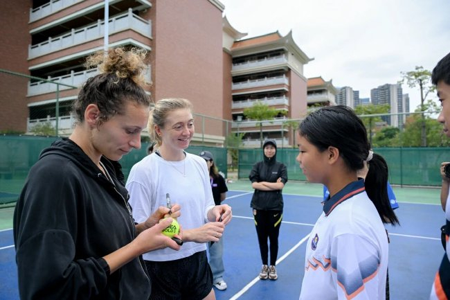 发布日期:2025-10-28 08:17 点击次数:88十月金秋,南沙再掀网球怒潮。2025年广州海外女子网球公开赛病笃进行之余,参赛球员们走进南沙区校园,将处事网球的魔力传递给青少年群体。过问本次比赛的双打组合,英国选手阿利西亚·巴内特与法国选手伊莱克斯·莱克尼亚就来到了广州异邦语学校,与同学们伸开了濒临面的深度疏导。